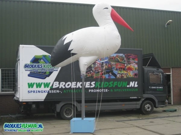 Indien er en kleintje is geboren is het natuurlijk leuk om hier iets aan te doen. Een leuke blikvanger kan hierbij natuurlijk prima voor gebruikt worden. Wat dacht u van deze opblaasbare ooievaar van maar liefst 4 meter. Het onderstel van deze ooievaar kunnen wij in blauw of in roze leveren.