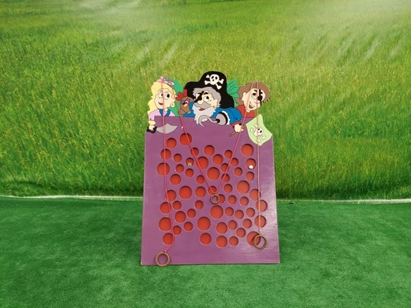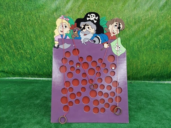 Piraat Bommen Spel, probeer met de bijgeleverde knikker het pad naar boven te volgen, maar pas op, de knikker mag natuurlijk niet verwijnen in de gaten. En echt behendigheidsspel.