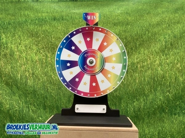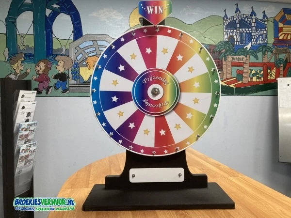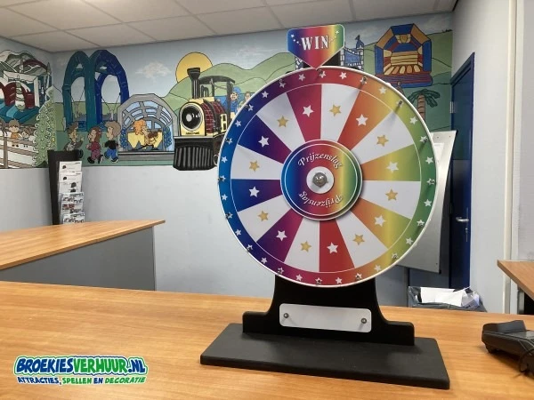 Huur uw eigen rad van fortuin en maak je eigen spelshow. Dit rad is speciaal gemaakt voor het plaatsen op een tafel of balie.