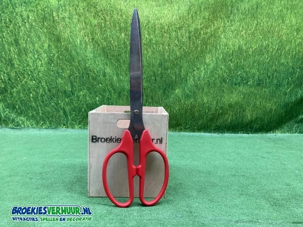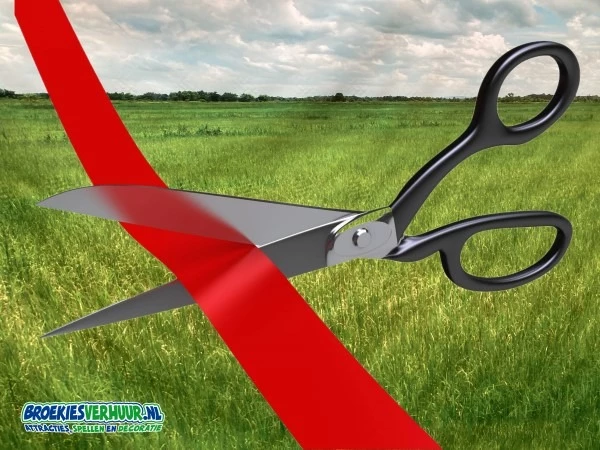 Schaar opening + lint van maximaal 5 meter. Deze schaar is bijzonder beschikt voor een leuk foto moment tijdens een openingsact van uw nieuwe bedrijf, winkel of evenement.