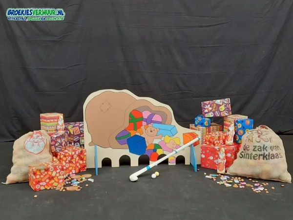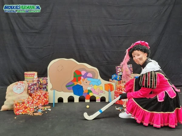 Sinterklaas Golf, probeer zoveel mogelijk ballen door de poortjes van het spelbord te spelen.