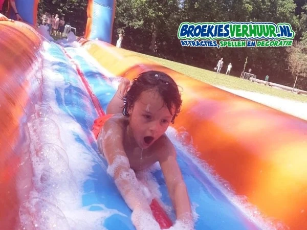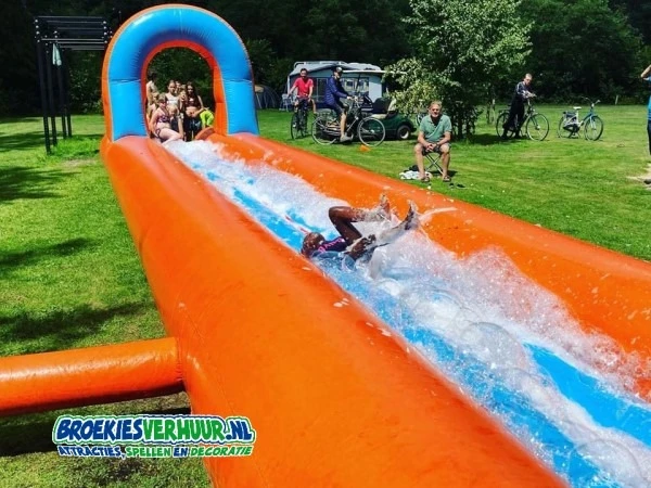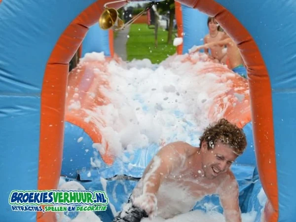 Bekend van televisie, deze geweldige buikglijbaan Snel naar de bel. Neem een aanloop en probeer al buik glijdend zo snel mogelijk de bel te raken.