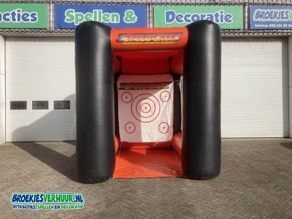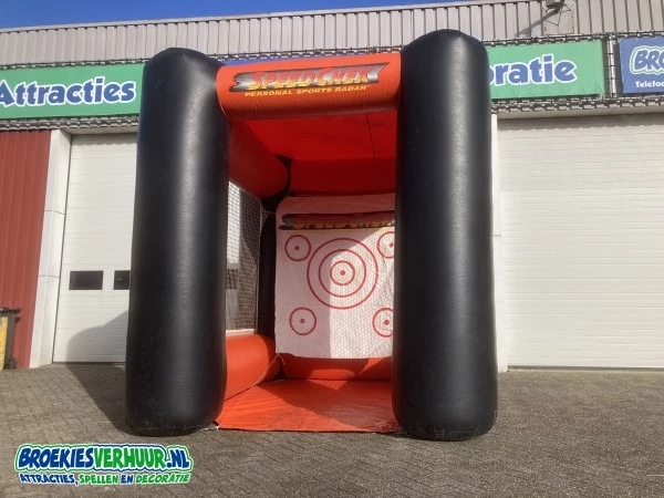 Een zeer veel verhuurde en erg leuke voetbal attracties is deze Speed Check inclusief snelheidsmeter. Een opblaasbaar doel welke speciaal is ontwikkeld voor gebruik met een snelheidsmeter. deze wordt dan ook meegeleverd. Speed Check inclusief snelheidsmeter is gemakkelijk op te bouwen en past al snel achter in een stationwagen. Wij verhuren ook losse sneheidsmeters voor meedere verschillende sporten.