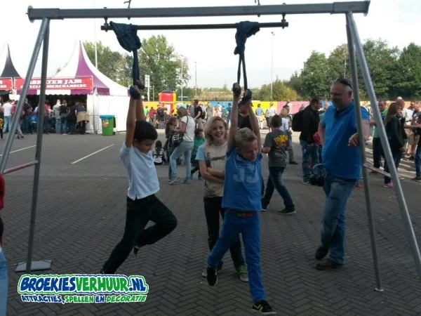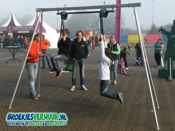 Een erg leuk competitiespel tijdens uw sportieve evenement. Spijkerbroek hangen kan worden gespeeld door zowel kinderen en volwassenen.Wie blijft het langst aan de spijkerbroek hangen?