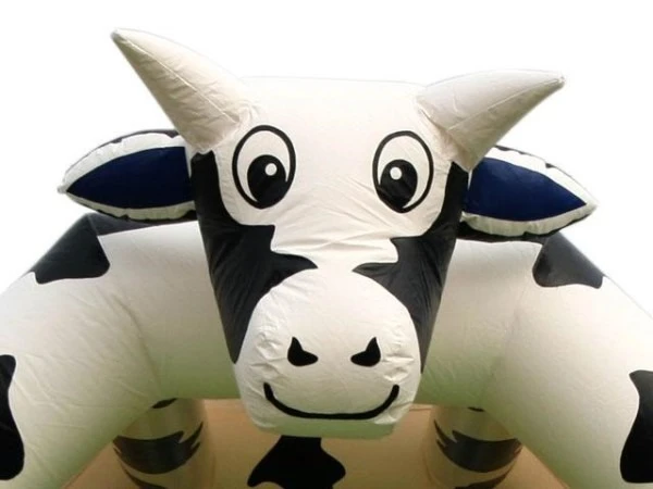 Springkussen Berta de Koe groot past in vrijwel elke stationwagen met de achterbank plat.