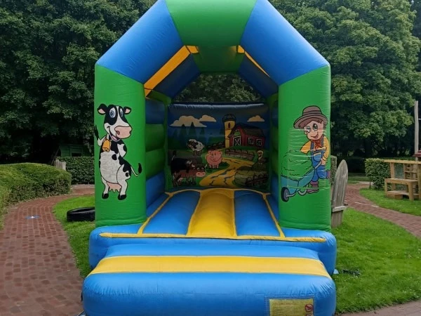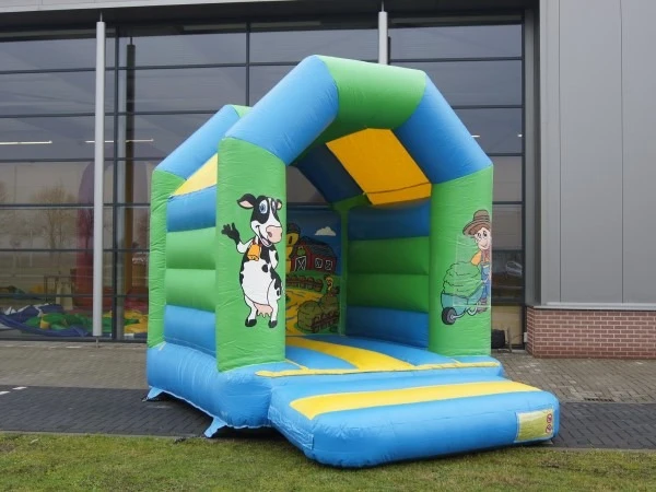 Springkussen boerderij klein is een bijzonder leuk thema springkussen welke voorzien is van een dakje, zodat u beschermt bent tegen zon en lichte regen. Springkussen boerderij klein is natuurlijk overal inzetbaar tijdens uw boerderij, dieren of landbouw themadag.