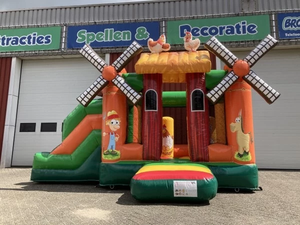 Een superleuk klein sringkussens, Boerderij met glijbaan. Genoeg voor urenlang speelplezier voor de kids. Dit Springkussen in erg geschikt om te plaatsen in eigen tuin.