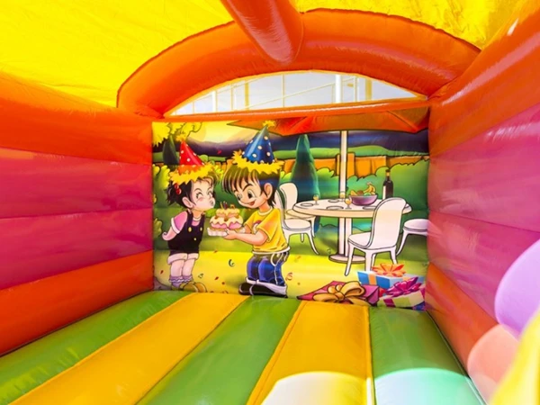 Springkussen Budget Feest is een klein springkussen met een fantastische huurprijs. Een zeer leuk springkussen voor elke kinderfeestje in eigen tuin. Springkussen Budget Feest beschikt over een dakje zodat de kinderen beschemd zijn tegen de zon of lichte regen.