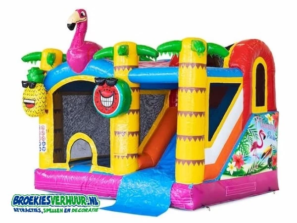 Springkussen Jumpy Happy Flamingo met Glijbaan