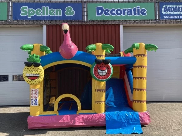 - 1 Spingkussen Jumpy Happy Flamingo met glijbaan
