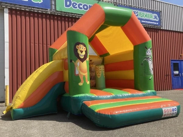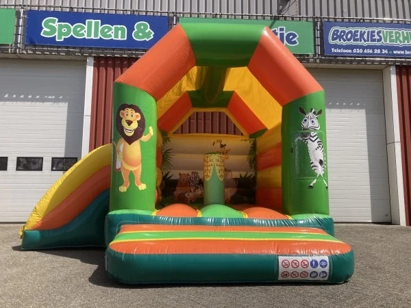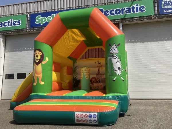 Een superleuk springkussen Jungle met glijbaan klein. Genoeg voor urenlang speelplezier voor de kids. Dit springkussen Jungle met glijbaan klein in erg geschikt om te plaatsen in eigen tuin.