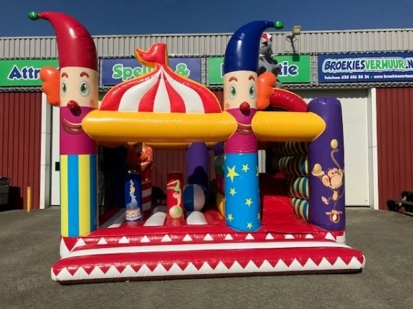 Hooggeëerd publiek, welkom in springkussen Multiplay Circus. Met extra speelobjecten en een glijbaan is onze Multiplay Circus goed voor uren lang speelplezier. Springkussen multiplay Circus is erg kleurrijk en is dan ook een absolute eyecather tijdens uw evenement.