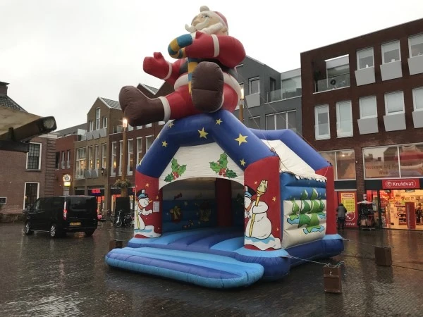Uniek en exclusief in Nederland. Springkussen Santaclaus is een mega groot Kerst springkussen met op de bovenzijde een enorme kerstman. Springkussen Santaclaus is hiermee bijna 6 meter hoog. Een enorme blikvanger tijdens uw kerst en winter markt, uw winkelcentrum of kerst gerelateerde activiteit.