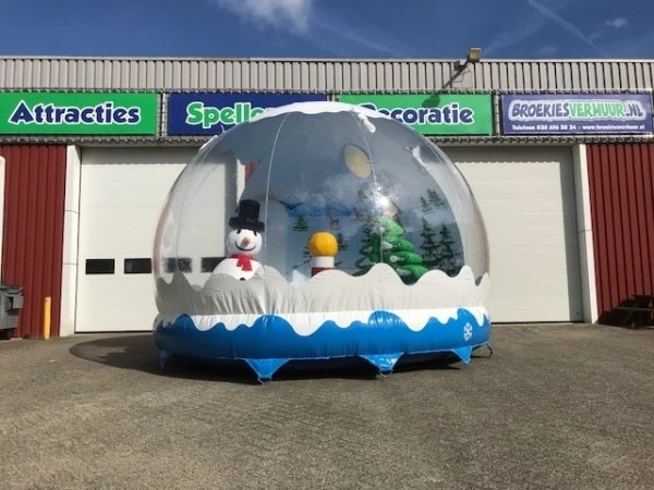 Springkussen winter globe is uniek, leuk om te zien en prima inzetbaar als promotie obbject tijdens uw Kerstmarkt of winter evenement.