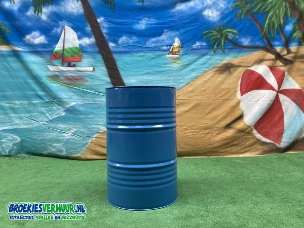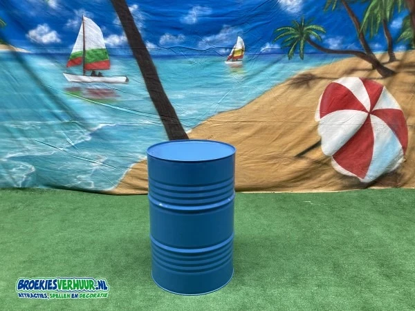 Een statafel festival blauw is gemaakt van een olievat. Te leuk voor een fantastische beach party, festival of zomer feestje.