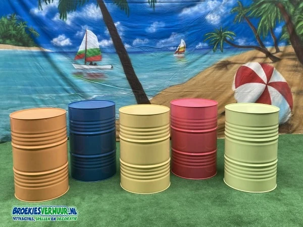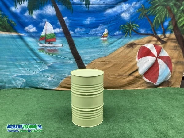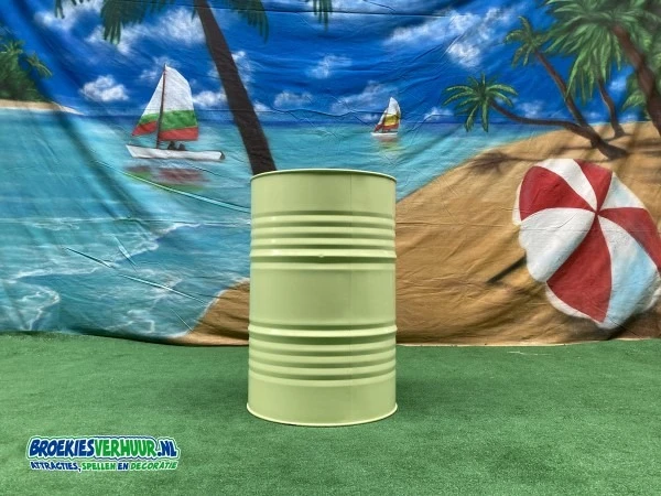 Een statafel festival groen is gemaakt van een olievat. Te leuk voor een fantastische beach party, festival of zomer feestje.
