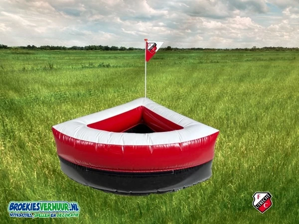Weer zo'n speciale en leuke voetbal attractie van Broekiesverhuur Stift Voetbal Corner FC Utrecht. Stift Voetbal Corner FC Utrecht is een nieuw en wederom unieke voetbal attractie. Probeer met de punt van je schoen de bal in de corner te schieten. Het komt bij Stift Voetbal niet aan op de snelheid maar juist op de techniek van de deelnemer.