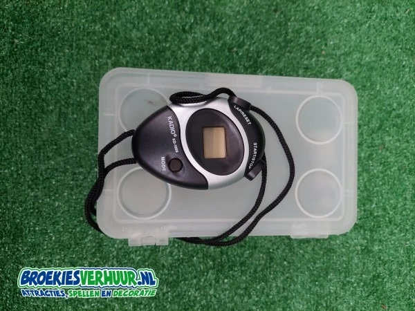 Voor het bijhouden van de juiste tijden tijdens de spelonderdelen bieden wij ook een Stopwatch aan. Bestel deze gewoon bij uw zeskamp artikelen, dan bent u helemaal compleet.
