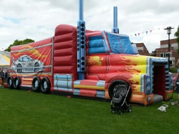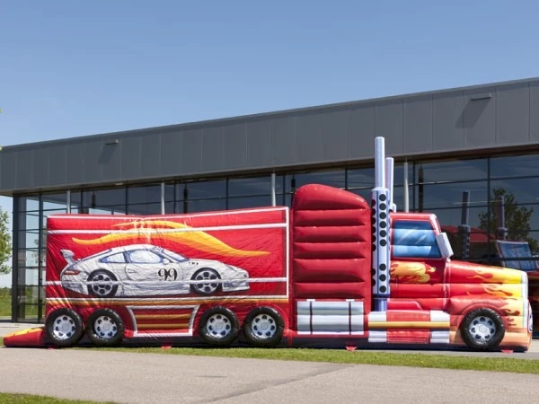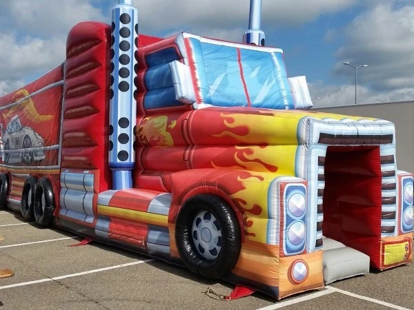 Weer zo'n unieke en speciale stormbaan, onze Giga truck running. De Giga truck running is een 14 meter lange hindernisbaan waarbij eerst een aantal hindernissen moeten worden genomen, alvorens je kunt klimmen en glijden.