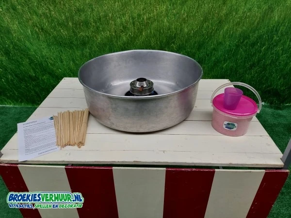 Naast de kraam en suikerspinmachine wordt er standaard voor 100 suikerspinnen ingrediënten meegeleverd.