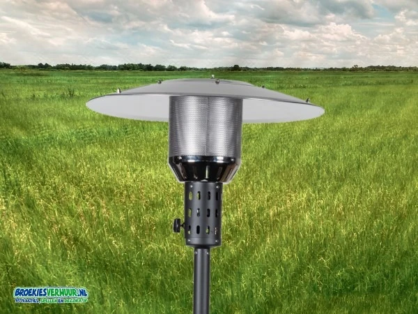 Een krachtige staande terrasverwarmer op gas. Het vermogen van maximaal 10000 Watt is variabel in te stellen en is voorzien van een piëzo ontsteking.