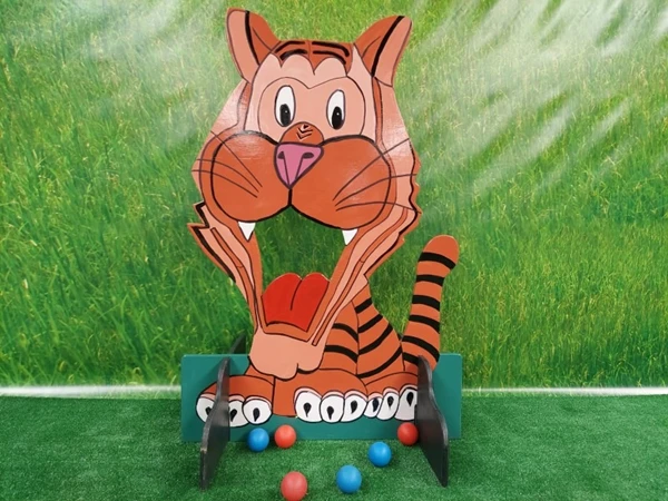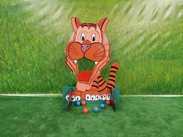 Tijger Ballen Gooien, probeer zoveel mogenlijk ballen door de bek van de Tijger te gooien.