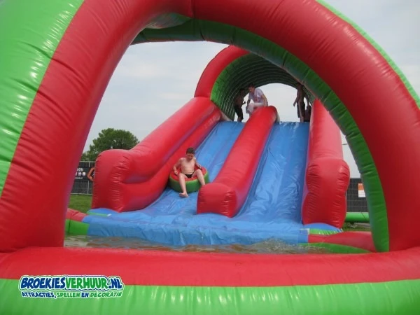 Onze Tobbedansbaan is uitgevoerd met een los zwembad, zodat u bij het opruimen eerst alles kunt oprollen en als laatste het zwembad kan laten leeglopen. Wel zo handig.
