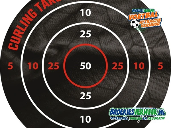 Culing is helemaal hot, en kan nu ook worden gespeeld op het voetbal veld. Voetbal Curling is een grote circel met puntentelling. Voetbal Curling is een echt voetbal behendigheidsspel wat leuk kan worden ingezet op de training, open dag, tijdens een toernooi of tijdens een voetbal kamp. Hoeveel punten scoor jij? Voetbal Curling van Broekiesverhuur.nl uw specialist in voetbal attracties.