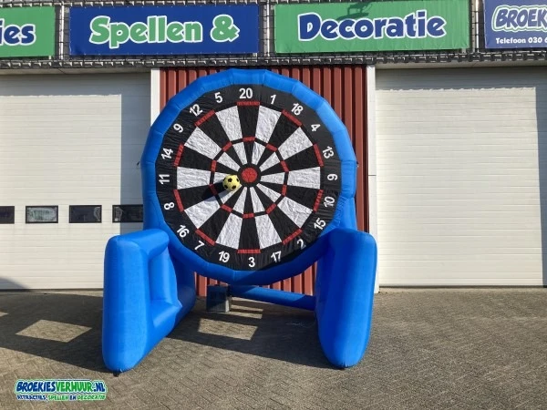 Het voetbaldarts spel is een leuk, sportief en uitdagend spel dat goed te spelen is met twee of meer personen. Dit spel is ideaal voor clubdagen en promodagen, of als onderdeel van een training. Het past prima op elk voetbalveld, en is binnen enkele minuten op te zetten.