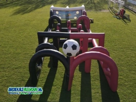 Uniek en bijzonder onze Voatbal Dribbel Arena. Speel met twee spelers tegelijkertijd, dribbel de bal door de hindernissen in het enorme parcours en probeer aan het einde nog een goal te scoren in het doel. Een absolute voetbal verhuur topper van Broekiesverhuur.nl