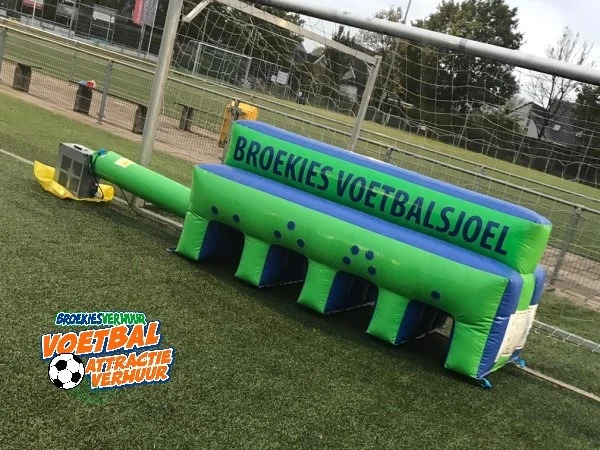 Weer zo'n speciale en leuke voetbal attractie van Broekiesverhuur Voetbal Sjoelen. Voetbal Sjoelen is een variant op het oud Hollands Sjoelen maar dan met een echte voetbal. Probeer bij het voatbal sjoelen in een vooraf bepaald aantal schoten een zo hoog mogelijke puntenscore te behalen. Het komt bij voetbal sjoelen niet aan op de snelheid maar juist op de techniek van de deelnemer.
