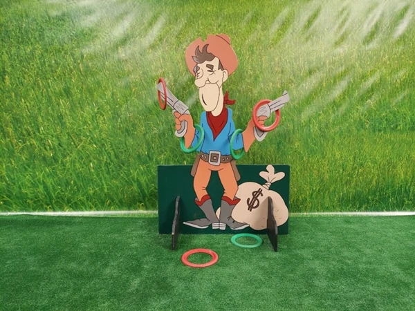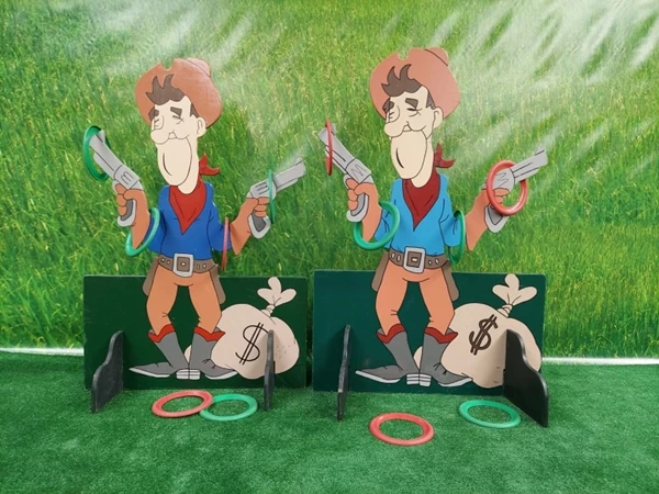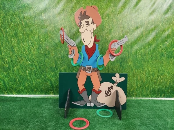 Western Ring Werpen, probeer zoveel mogelijk ringen over de pistolen van deze cowboy te werpen.