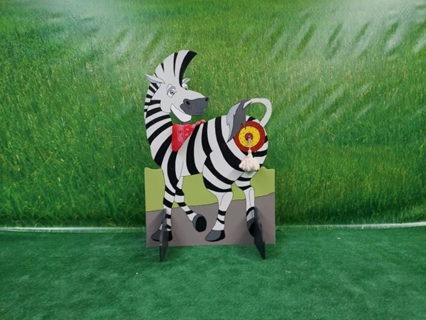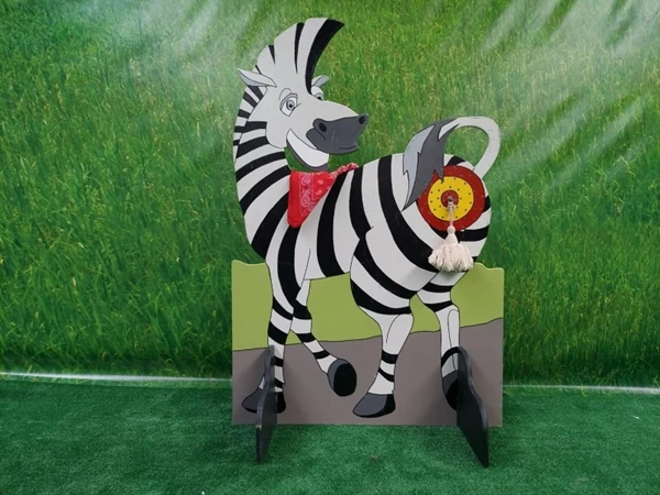 Zebra Prikken, probeer geblinddoekt de staart van de zebra op de juiste plaats te prikken.